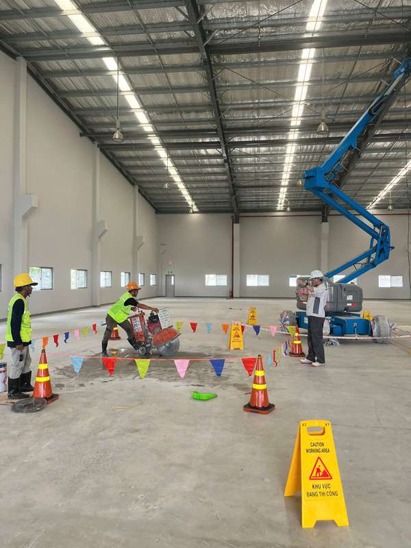 Một số công trình còn yêu cầu cắt tường, cắt dầm hoặc mở rộng không gian nhà xưởng. Đây là những hạng mục phức tạp, đòi hỏi sự phối hợp chặt chẽ giữa kỹ thuật và thiết bị.